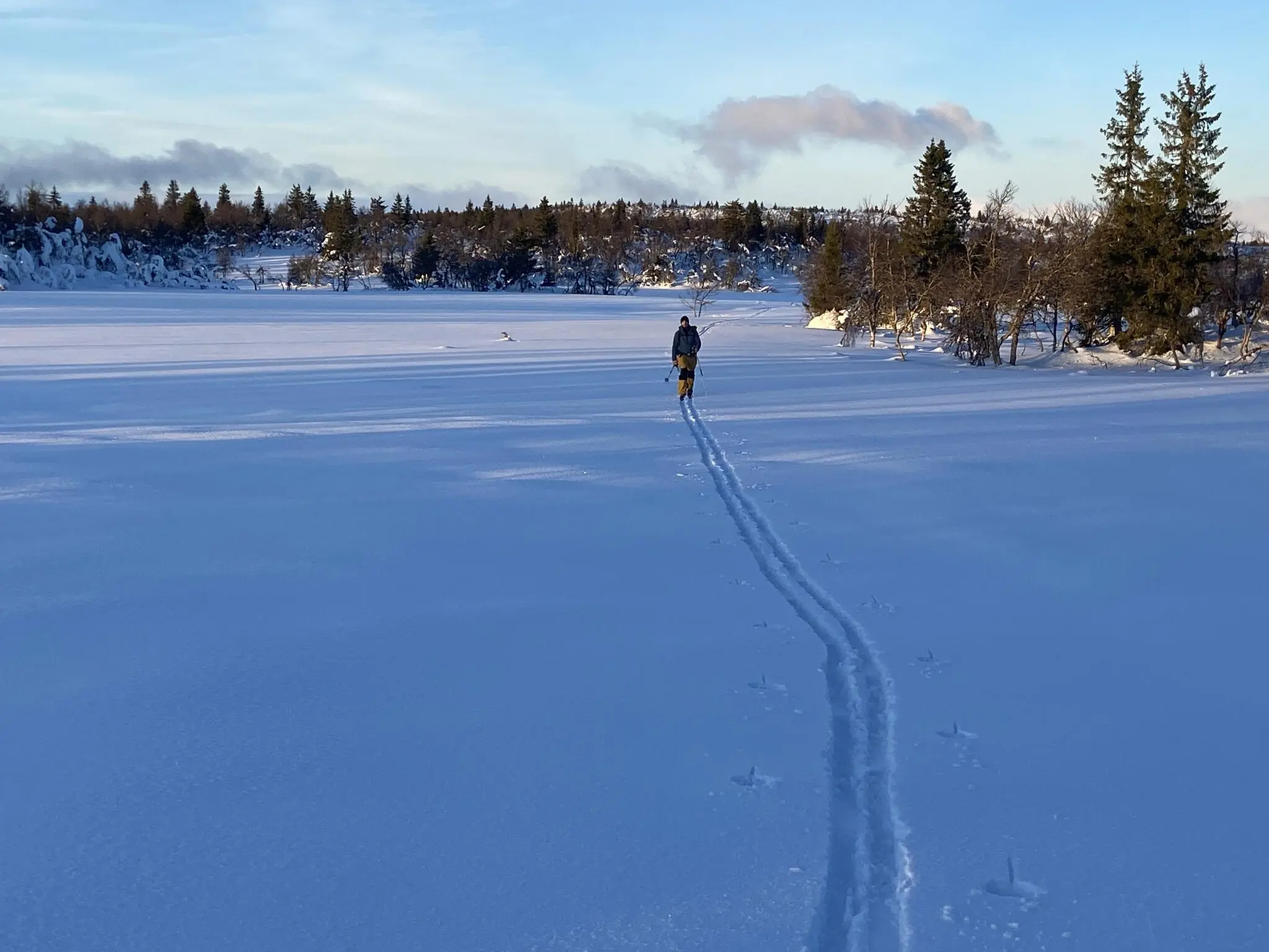 Istället för skridskor denna dag blev det turskidåkning vid fjället Önrun. Fint område med mycket fjällbjörk, vyer mot Offerdalsfjällen och Ansätten. Härligt också med stora myrar. Ca 50 cm med snö mätte jag till på myrarna.