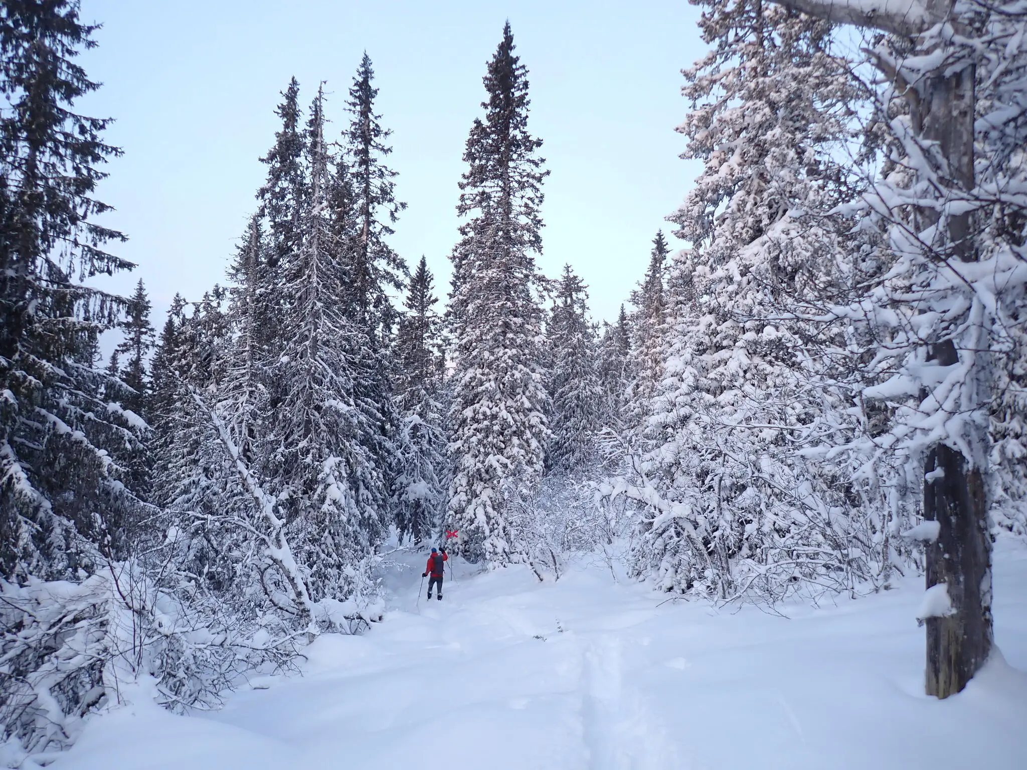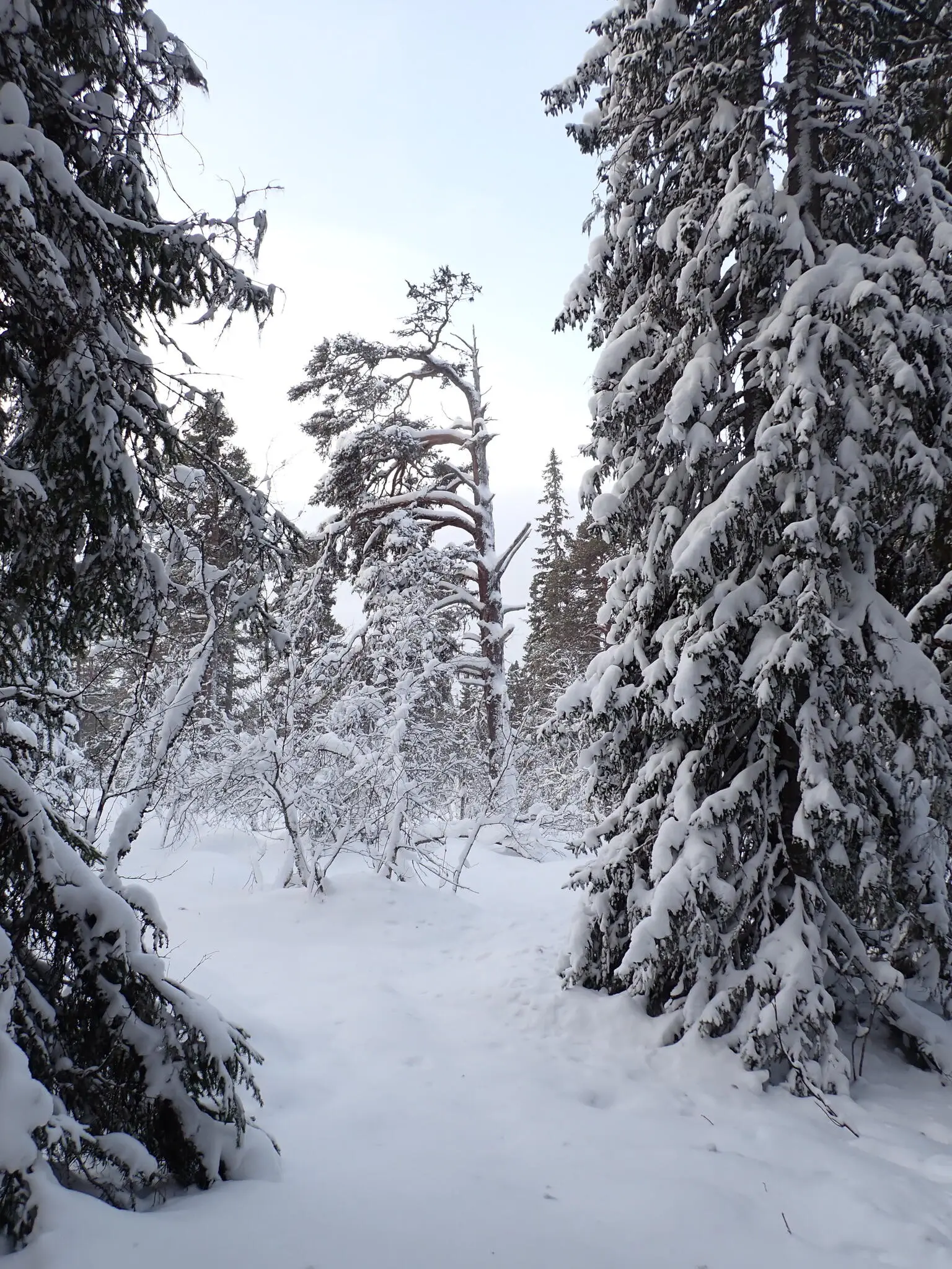 Vi genade lite strax ovanför Nipvallen. Leden tog oss sedan med rätt måttlig uppförslutning genom fin skog och upp till kalfjället.