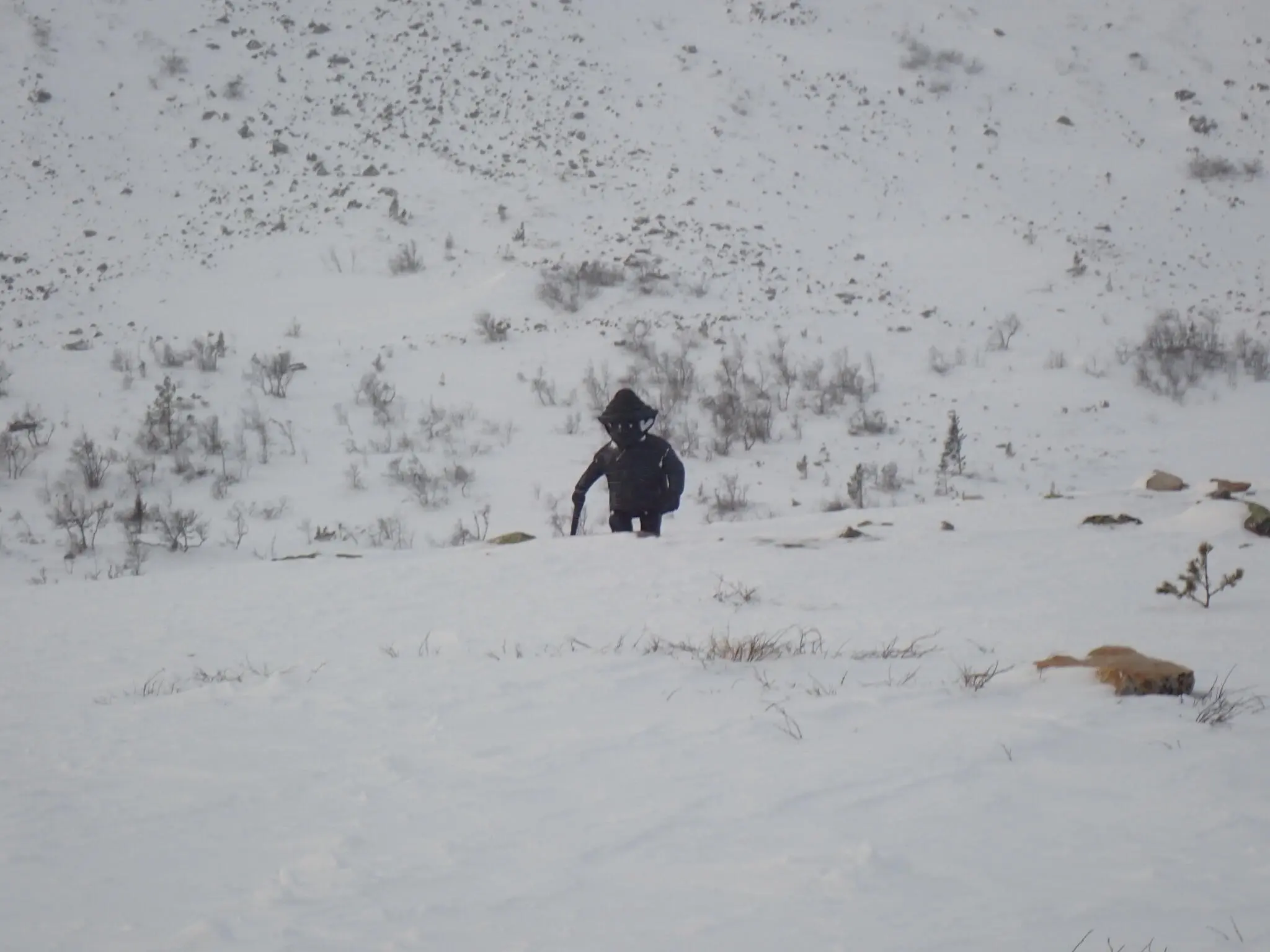 Uppför i björkskogen förde leden oss. Sedan uppe på kalkalfjället. Från djup lössnö till snöbrist varvat med ojämna hårda snödrivor att korsa.