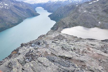En beskrivning i bilder från min och min dotters vandring utmed Besseggen, denna gång "bakvägen" från Gjendesheim över eggen. Och antagligen inte för sista gången heller. En fantastisk tur. Men rekommenderas är att komma från rätt håll vilket är från Mermurubu över eggen till Gjendesheim. Då får man branten uppför, vilket är lite trevligare. Men båda håll går vandringsmässigt bra. Många tar båten till Merurubu, en annan variant är att skicka packning med båten. Då går man snabbt och lätt strandkanten bort eller över Besseggen. Hela turen tog 3 dagar, från Gjendesheim till Spietestulen där jag tog bussen tillbaks för att hämta bilen. Bussturen tog 4 timmar och går 1 gång/dag. Väl i Spietestulen tog jag en löprunda upp på Galdhöpiggen på kvällen i träningsoverall och joggingskor, Grymt bra mjölksyreträning. Det tog 2 timmar och 24minuter upp. Vegar Ulvang lär ha sprungit upp på 1 timme och 10 minuter.Om ni tänker åka dit är en lista på tel nr användbar, speciellt om ni tänker ta bussen mellan Spietestulen-Gjendesheim eller motsatt. Långtidsparkera kan man göra på båda ställena, men det är ganska dyrt, ca 100kr för varje dag (inte dygn)