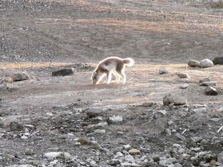 Denna unge hade en lustig svans. Kom så nära som tre meter men när den ville ta mitt toalett papper morrade jag lite och då stack den med"svansen mellan benen". Ett roligt möte då jag bara sett fjällräv i hägn(Boda Viltstation) tidigare.