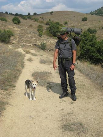 Hunden "Sky" som följde med på vandring