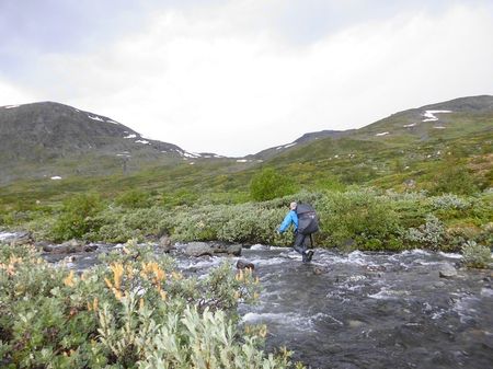 Vadet över Ruovssokjåhkå ovanför utmärkta vadet
