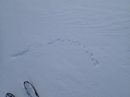 Vi fann bitar renpäls och järvspår. Nedblåst rest ...
