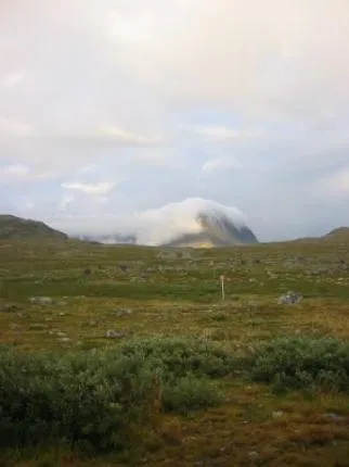 Kortet är taget från Singistugorna. Vi stog och såg molnen komma glidande långst bergskammen och in över berget, som om någon hällt glasyr över berget, och på totalt 8 minuter var det täkt.