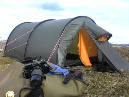 Dels lite uppkäftigt att fota sin systemkamera med sin mobiltelefon, sen får jag även lust att krypa in i tältet och vila lite :)
