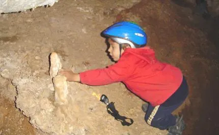 Alex utforskar de inre delarna av grottan Avenc des Pou