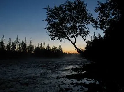 Dagens fiske börjar lida mot sitt slut, klockan är snart ett på natten och över forsen dansar älvorna, mycket vackert.