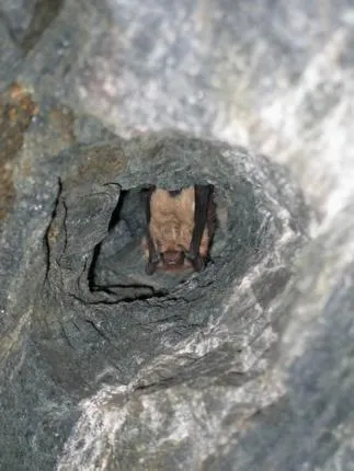 I ett borrhål 80 meter ner i en gruva har den här fladdermusen valt att övervintra.