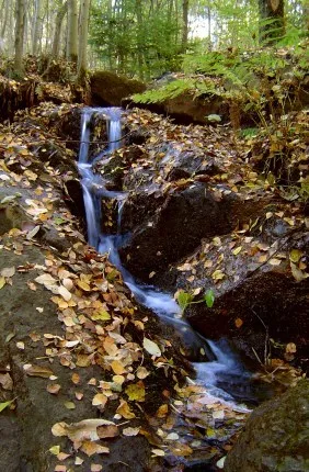 Snygg bild med bäcken som drar blicken med sig. Löven runt omkring ger verkligen känsla till bilden.