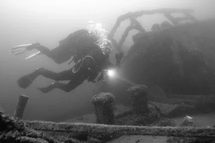 Jag gör ett sista ok innan jag och min parkamrat simmar in i förskeppet på Gustaf Vasa. Bilden är tagen av Daniel Dahlström.