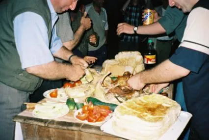 Georgisk festmåltid i byn Gomi