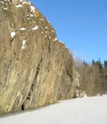 "Korpväggen", brant och hårt och ingen plats för säkringsmannen. Se även kartpunkt.