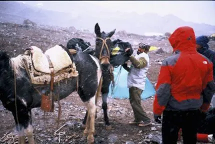 Packar ihop baslägret efter bestiging av Aconcagua.