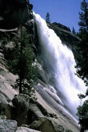 Ett vattenfall på väg upp mot Half Dome
