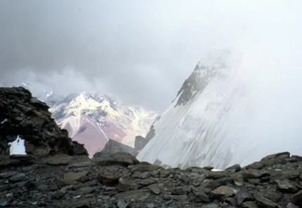 När vi når toppen har ett kraftigt oväder börjat dra in, sydväggen skymtar en kort tid genom molnen.
