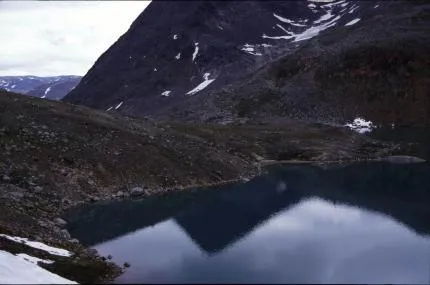 Fick inte med både fjälltoppen och sjön i sökaren, fångade istället speglingen av fjälltoppen i sjön.