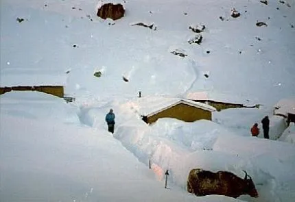 Det har äntligen slutat att snöa efter 33 timmar så nu kan man börja planera hur man ska ta sig ner igen.