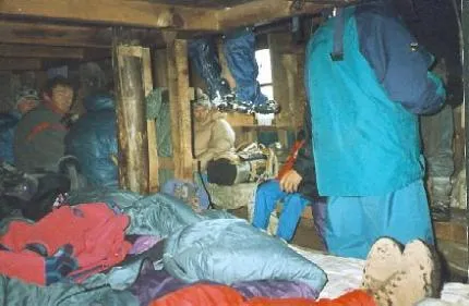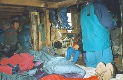Lodgerna var överfulla av vandrare under snöovädret även tältarna flydde inomhus.