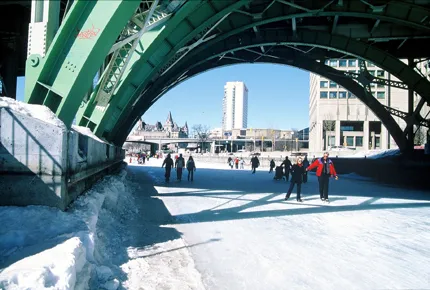 Skridskoåkning på Rideau canal i Ottawa Kanada. 8km skridskoåkning genom staden.