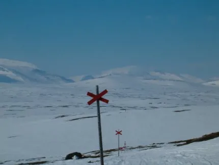 En imponerande syn som möter oss när vi passerat Torkilsstöten, sikten är god, humöret på topp och fjället breder ut sig under våra skidor.