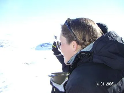 Lunchdags i strålande solsken halvvägs upp på Lill Sylen.