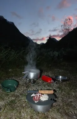Stannade till vid Vistas stugan då jag hade fått ett ruggigt sug efter en Coka Cola, köpte en burk gick över bron och slog läger. Lagade kvällsmaten och avnjöt pastan med korv och parmesan och min välförtjänta läsk.