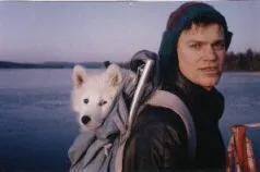 När en liten hundvalp inte kan springa på spegelblank is är det bara att göra som på bilden.