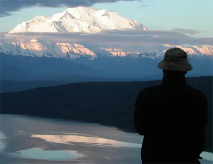 Mount McKinley (6194 m) fotat från Denali National Park, norr om Wonder Lake. Tiden är två timmar efter midnatt.