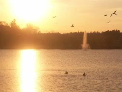 Solen är på nedgång över Lillfjärden som är ett ökänt fågelställe mitt innuti staden Hudiksvall