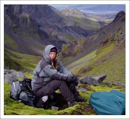 Jennies fixar iordning sig före vi skall äta gudomlig vegmat på vandringen.