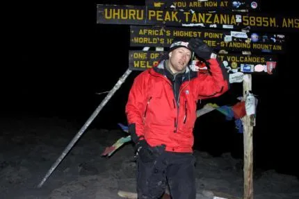 Toppbild en lite för tidig morgon på Uhuru Peak, Kilimanjaro.