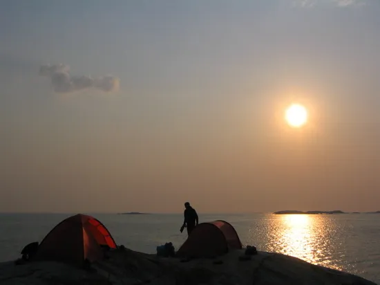 Nattcamp i solnedgång
