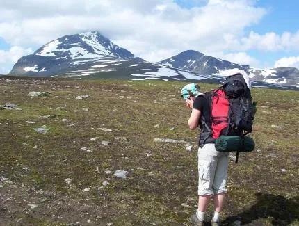 Härlig bild!! Skrattar när jag ser den, känner så väl igen mig på fjället när jag "letar" täckning!!