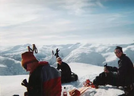 Vi tar lunchpaus på väg upp på en topptur i Jostedalen en grymt fin dag runt feb 2005.