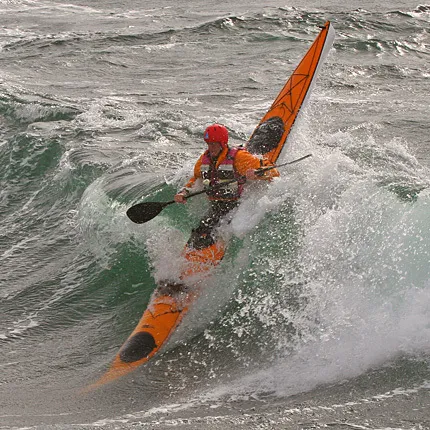 Bilden är nummer 1 i en serie av tre bilder när Johan gör en framlängesvolt med en 520cm lång havskajak!!
