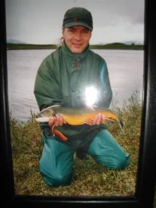 Rödig tagen på torrfluga i Kiruna fjällen en tidig morgon i börjn av juli-04