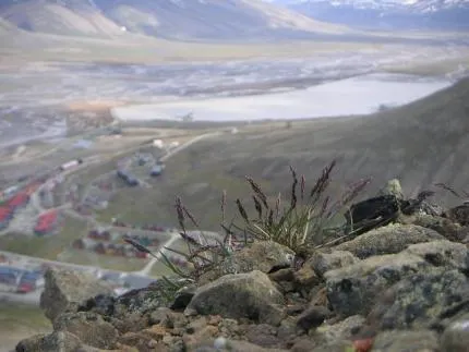 Longyearbyen och Adventdalen sett från Platåfjellet, Svalbard