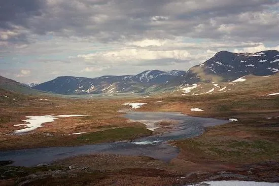 Härligt böljande vyer med både vatten o fjäll o snö