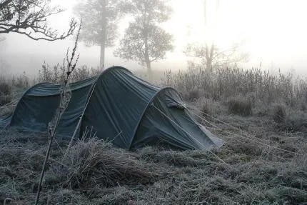 Morgon i slutet av oktober under en kanadensartur. Frost på tältet och is i vattendunken. Vi var ute för att hitta strömmande vatten (lite fors) att paddla i och vi fick till slut betalt för våra ansträngningar. Vem kunde tro att det kunde vara så här mycket äventyr i östergötland?