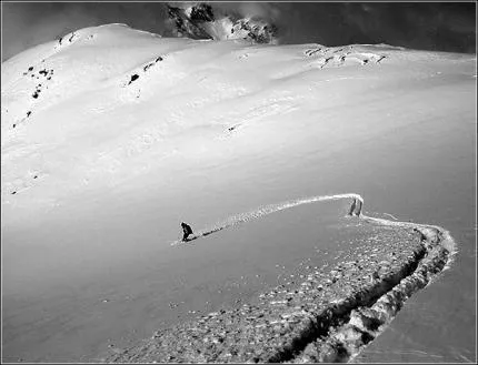 Min guide för dagen kolla snöförhållandena under en tur på baksidan av Grands Montets.