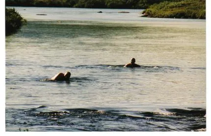 ibland blir det bra konstigt vid en fjälltur vid tänkt att fiska men det blir så varmt att man ligger och badar heladagarna istället