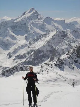 Jonas njuter av uppförsåkning i Monterosamassivet.