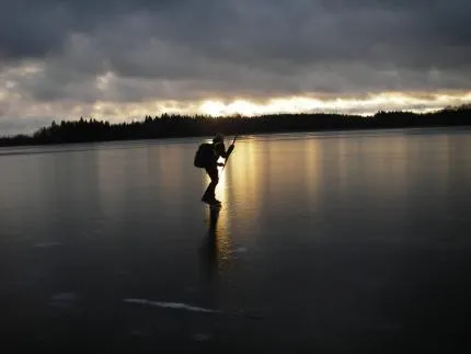 På väg hemåt i hård vind över Vällen