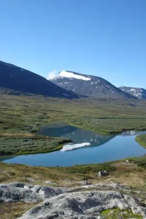 Vandring på Kungleden taget från en a stugorna i Alesjaure.