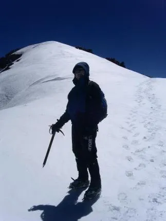 Daniel Båth strax efter det branta partiet av glaciären