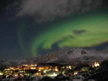 Bara norrskenet ger bilden en fyra. Sedan blir det så fint med alla upplysta hus, som ger en härlig känsla av jul.