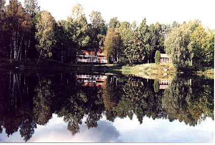 Detta kort tog jag när jag och min sambo, Stefan, var ute och paddlade kanot. Vi befinner oss vid en sjö i närheten av Älvsered. Husen som ni ser tillhör Stefans familj.