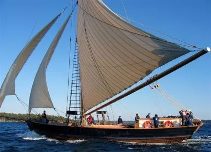 Skutkappsegling på Jungfrufjärden i Stockholms skärgård oktober 2005. Jag var styrman och taktiker ombord och seglar kontinuerligt med denna fantastiska skuta. Se www.sofialinnea.se