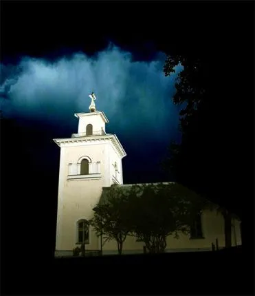 Kvällsbild med roligt ljus ovanför kyrktornet. Ökade sedaneffekten i photoshop.